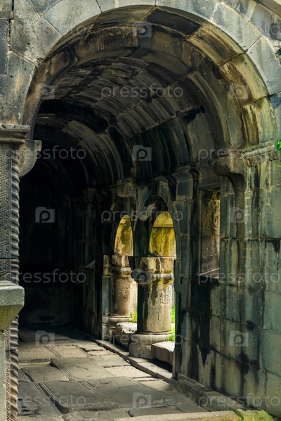 Закрытие аутентичной арки, детали монастыря Санаин в Армении