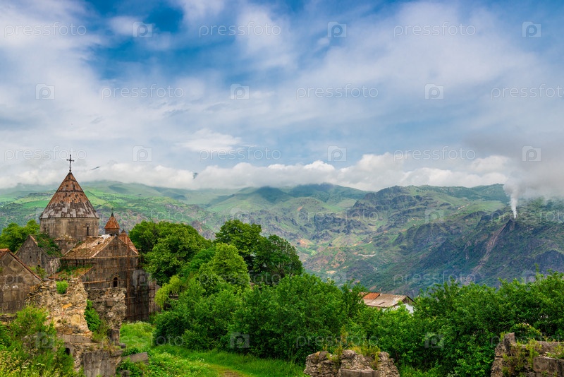 Прекрасный вид на монастырь Санаин и горы, Армения