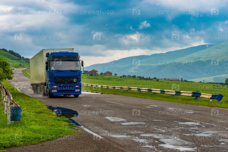 Езда на вагоне по дорогам Кавказа с грузом в пасмурный день