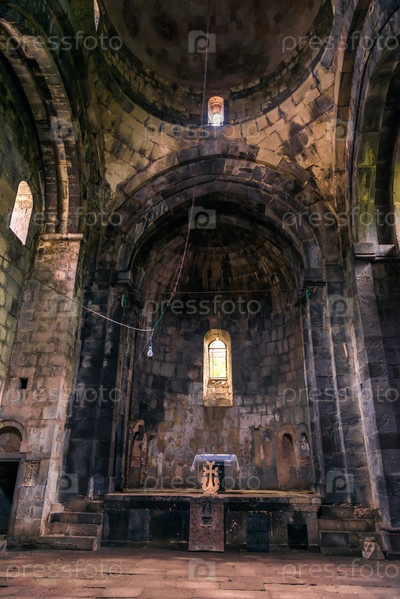 Интерьер старой аутентичной православной церкви монастыря Санаин, Армения