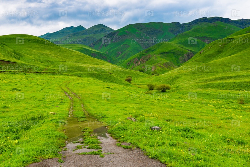Грязная дорога, ведущая в горы, ландшафт Армении