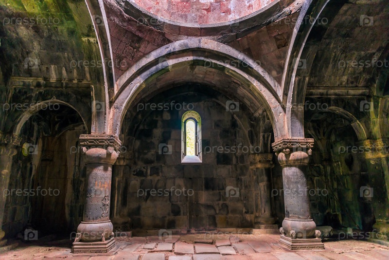 Интерьер монастыря Санаин В Армении, арки и арки сооружения