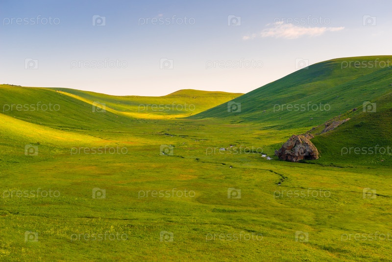 Красивый пейзаж в солнечный день, гладкая зеленая красивая долина гор Армении в июне