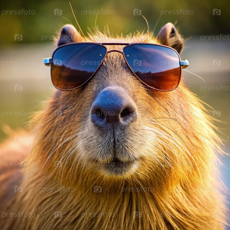 Закрыть Капибара носить солнцезащитные очки. генерирующий ИИ