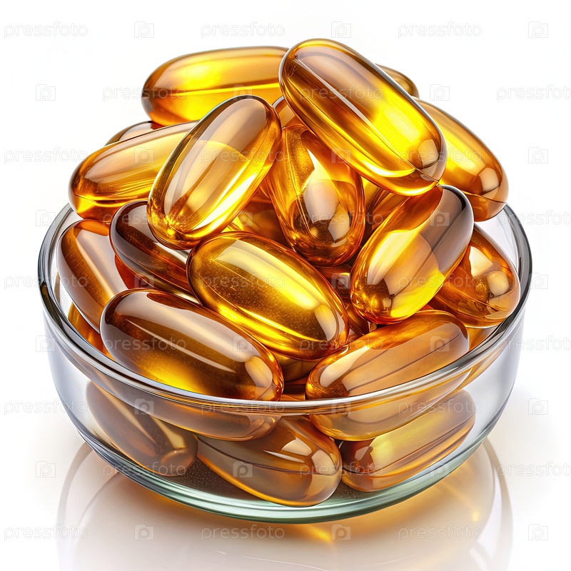 Стеклянная чаша наполнена витаминными капсулами. Генерирующий ИИ