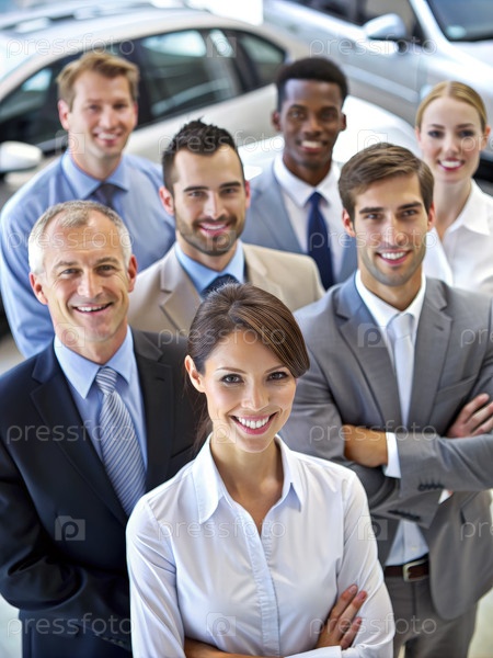 Бизнесмены, стоящие перед автомобилем. Генеративный ИИ