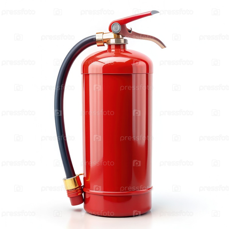 Красный огнетушитель на белом фоне. Генерирующий ИИ