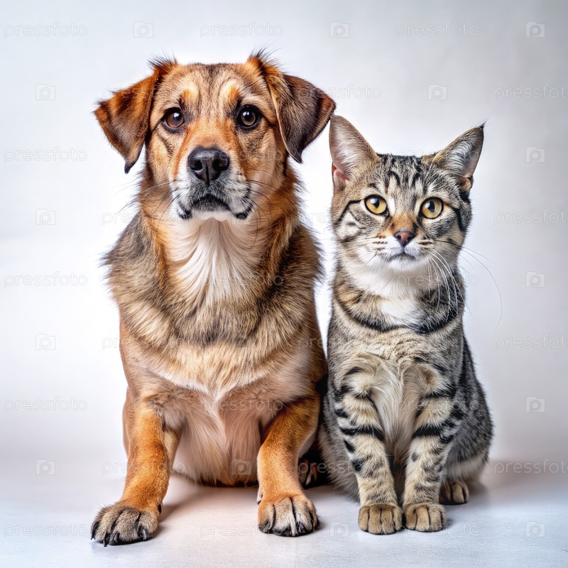 Собака и кошка сидят вместе. Генерирующий ИИ