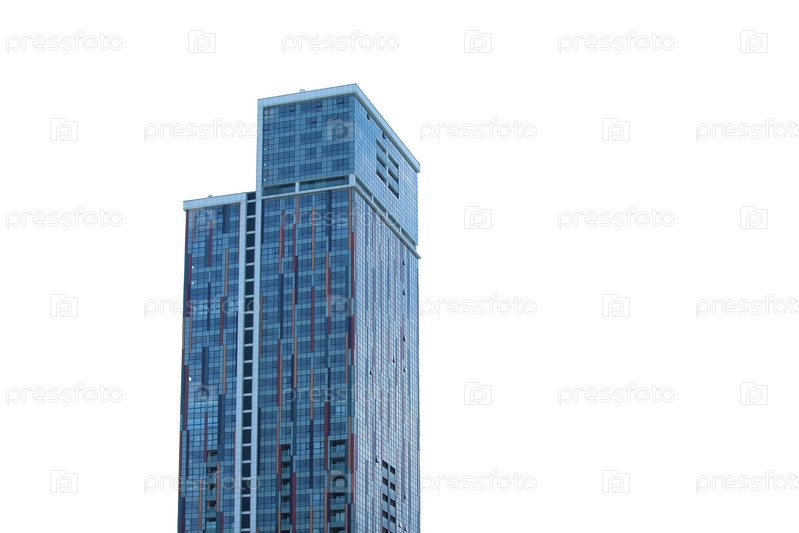Современное высотное стеклянное здание изолировано на белом фоне