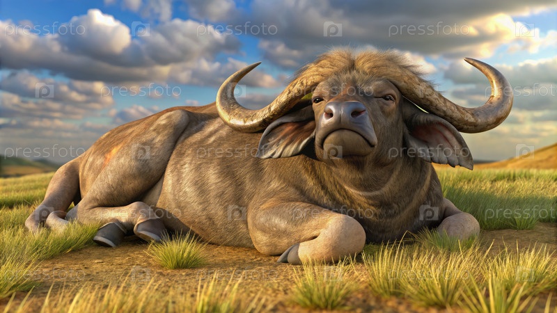 Величественный бизон отдыхает на Вердантском пастбище. Генерирующий ИИ