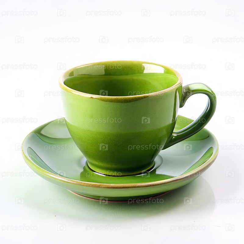 Зеленый стакан и тарелка на белом фоне Генератор ИИ