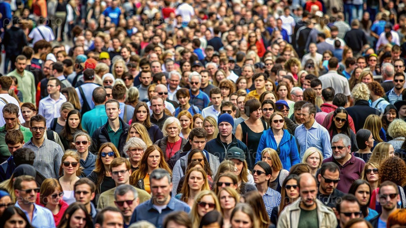 Большая толпа гуляет по улице. Генерирующий ИИ