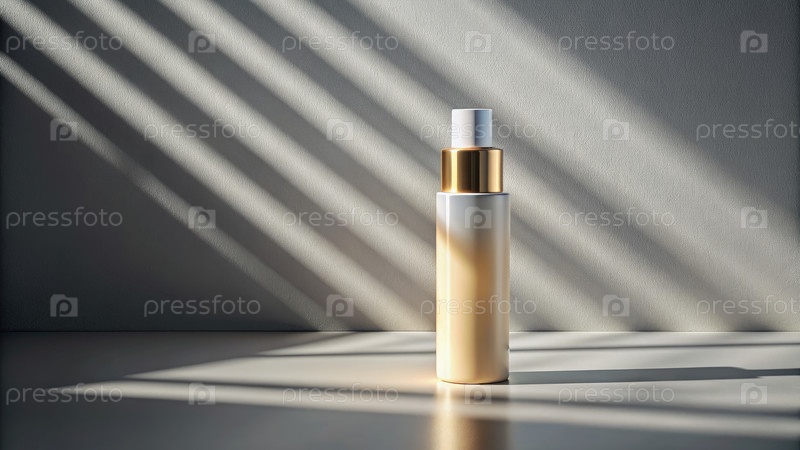 Белая бутылка с золотой крышкой на блестящей поверхности Генерирующий ИИ