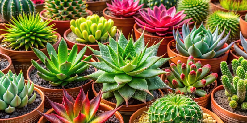 Разнообразная коллекция суккулентов в различных горшках. Генерирующий ИИ