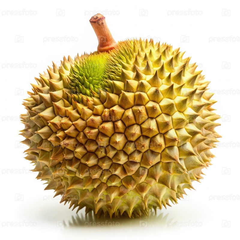 На белом фоне - зрелый дюрианский фрукт. генерирующий ИИ