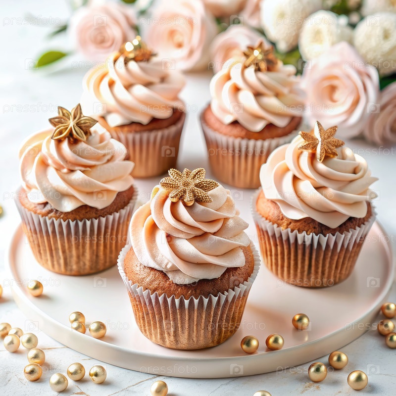 Белая плита с кексами, покрытыми морозом. Генерирующий ИИ