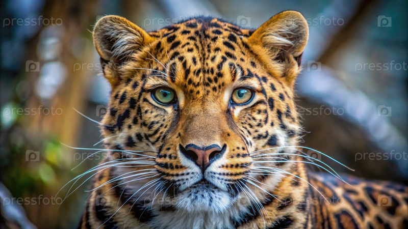 Закройте глаза леопарда, глядящего в камеру. Генерирующий ИИ