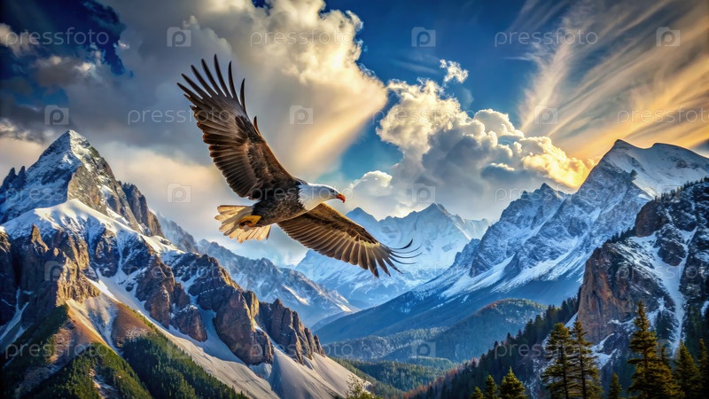 Орел парит над горным хребтом. Генерирующий ИИ