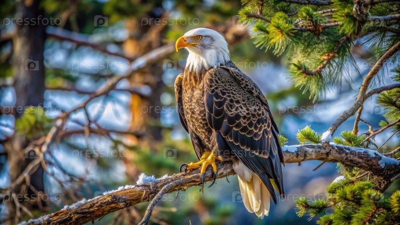 Лысый орел сидит на ветке дерева. Генерирующий ИИ