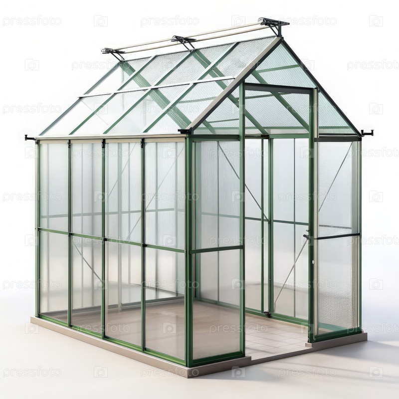 Зеленый дом на белом фоне. Теплица. Генерирующий ИИ