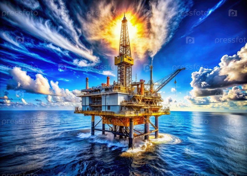 Нефтяной Риг посреди океана. Генерирующий ИИ