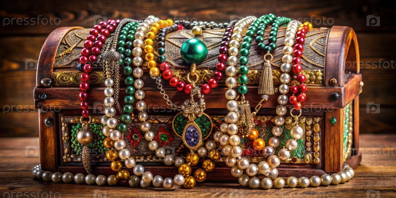 Деревянный ящик, переполненный бусинами. Генерирующий ИИ