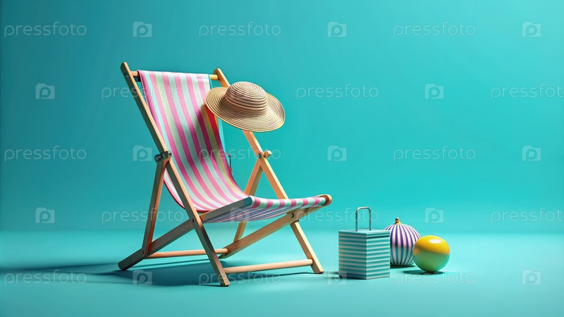 Пляжный стул с соломенной шляпой