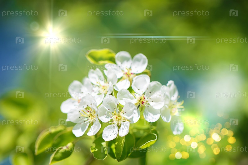 Белые цветы весенней яблони. Приход весны и цветущее дерево