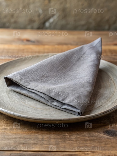 Тарелка с серым льняным напкином. Генерирующий ИИ