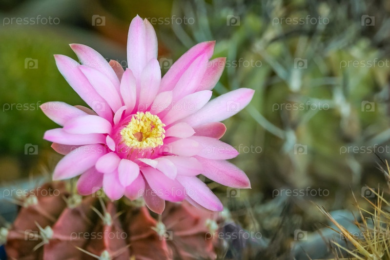 Вид розового цветка кактуса Gymnocalycium friedrichii (небольшая глубина резкости)