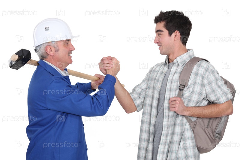 Разнорабочий пожимает руку стажера