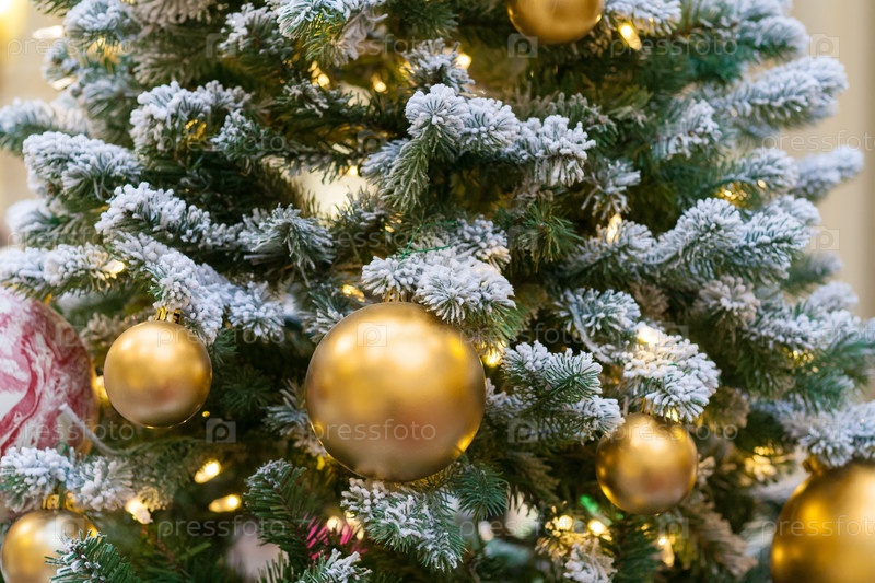 Декорации рождественской елки с золотыми шарами (закрыть)