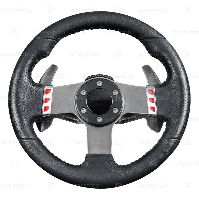 Кожаный гоночный руль с кнопками, изолированный на белом фоне