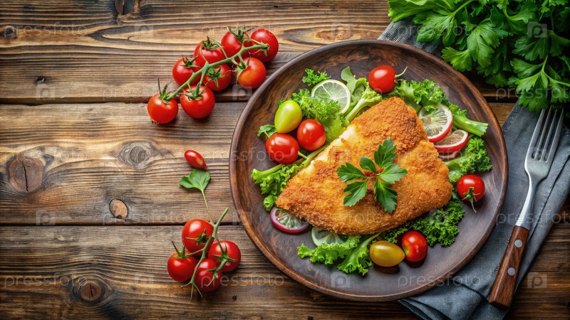 Тарелка еды с рыбой, помидорами и салатом. Генерирующий ИИ