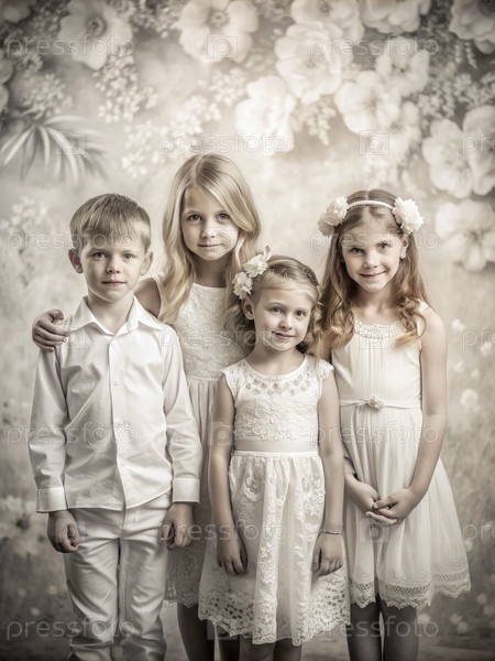 Группа маленьких детей, стоящих вместе. Генерирующий ИИ