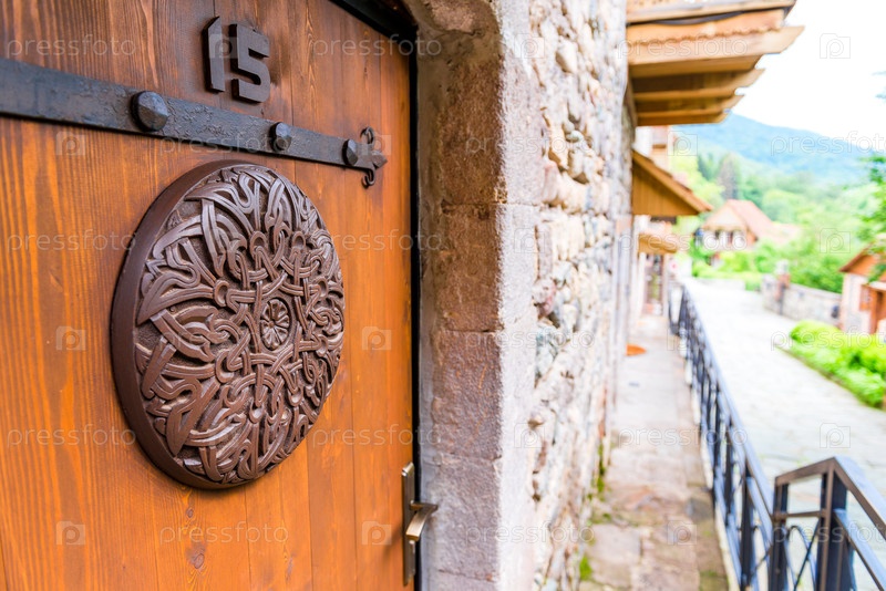 Детали двери в средневековом стиле на улице