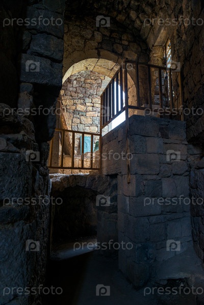 Прогулка по Татевскому монастырю, интерьер - старые каменные стены и арки, Армения