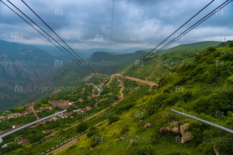 Вид на живописные горы Армении и ущелье с канатной дороги возле Татевского монастыря