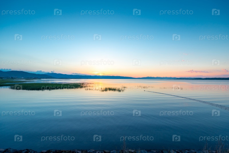 Утренний пейзаж, живописное озеро Севан на рассвете, Армения