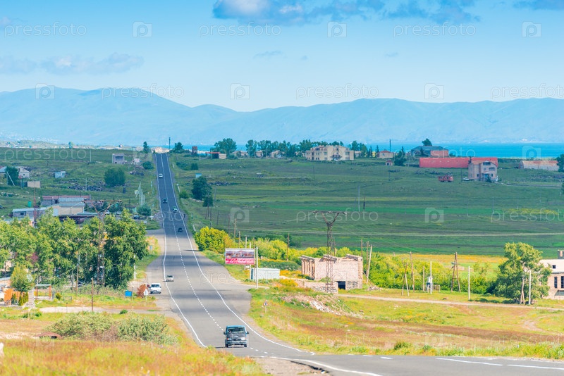 Дорога, село и вид на горы, пейзаж Армении