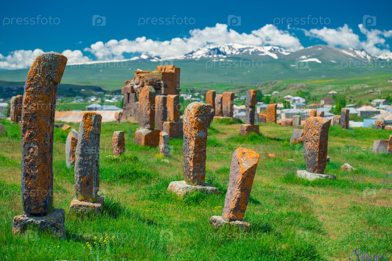 Древние хачкары на знаменитом армянском кладбище Норатус, достопримечательность