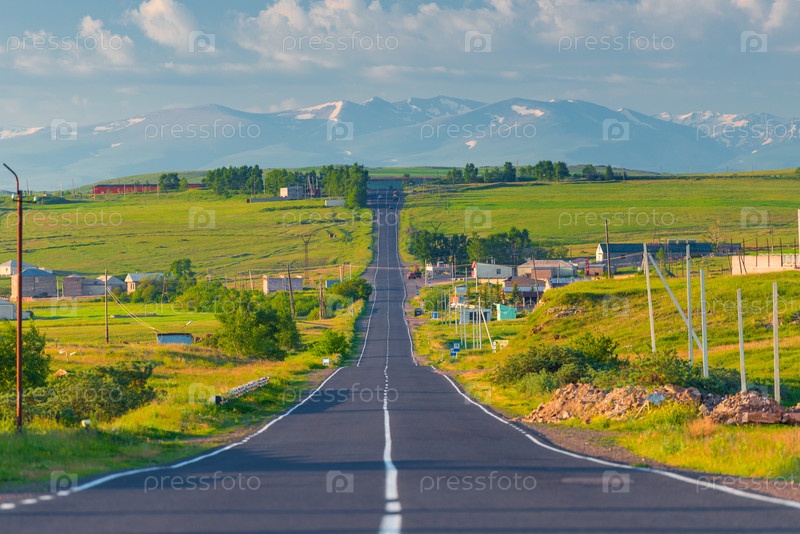 Прямой маршрут в горы через село в Армении утром