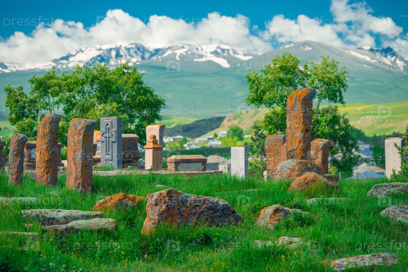 Древние хачкары на кладбище Норатус, достопримечательность Армении
