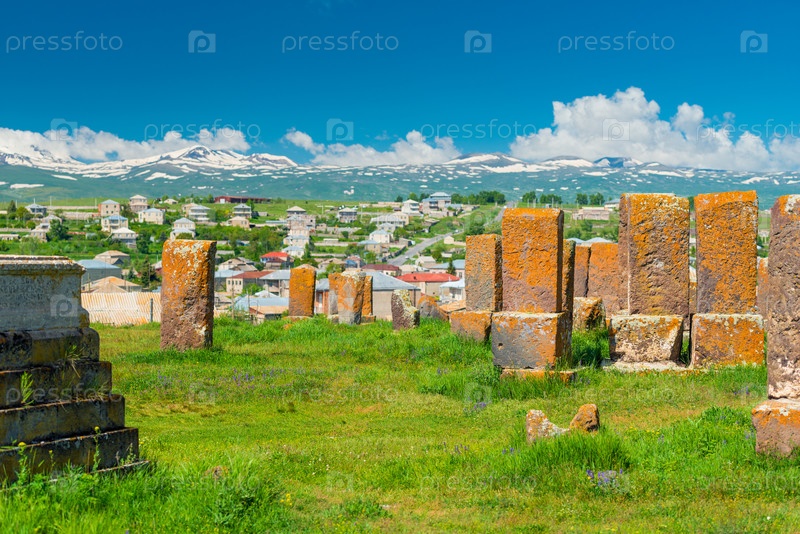 Вид на древнее армянское кладбище Норатус с каменными хачкарами