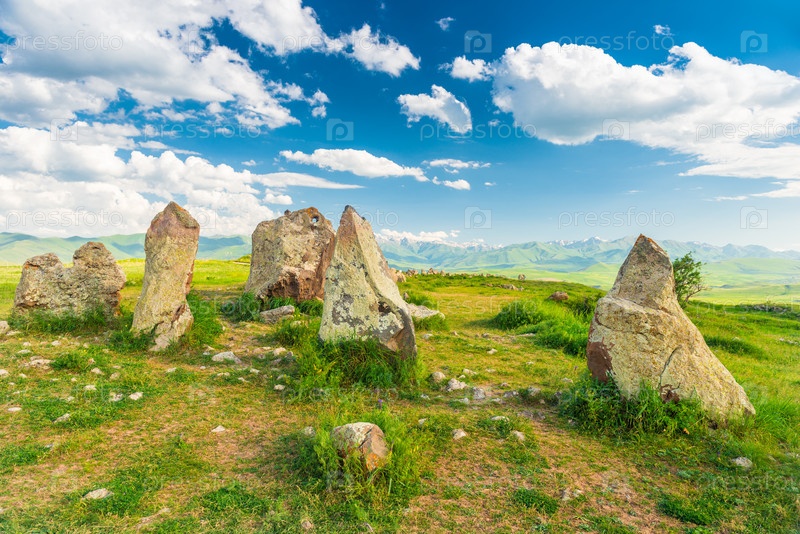 Большие камни в поле с круглыми отверстиями в Караундже - армянский Стоунхендж, Зоратс Карер, Армения