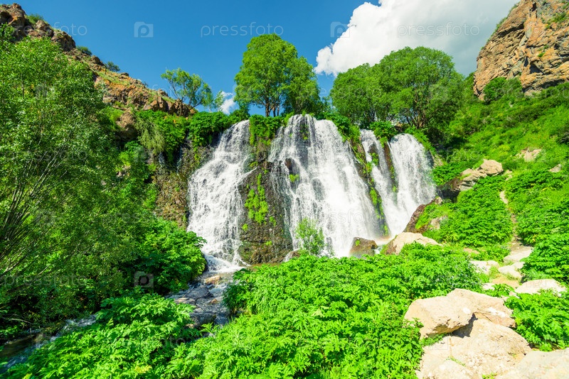 Красивый полноводный живописный водопад Армении Шаки