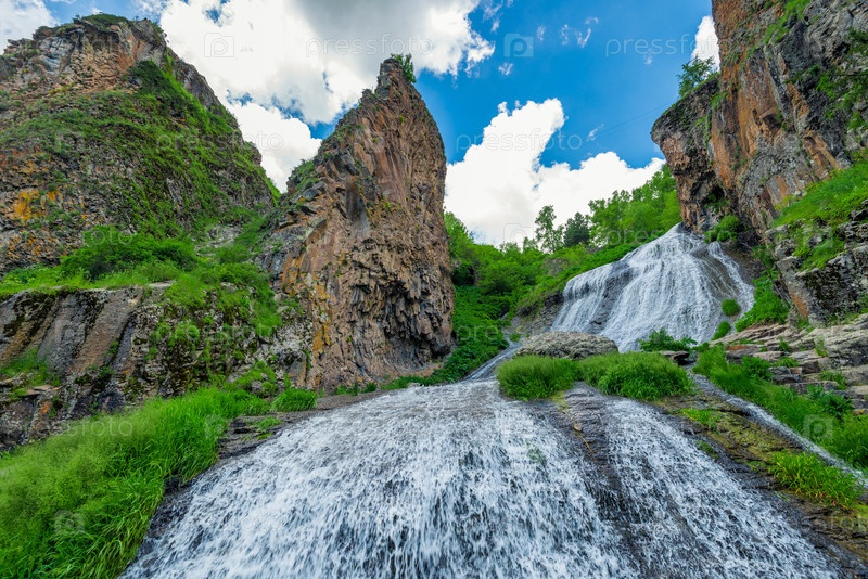 Нижний вид на изящный водопад Jermuk Mermaid Hair в Армении