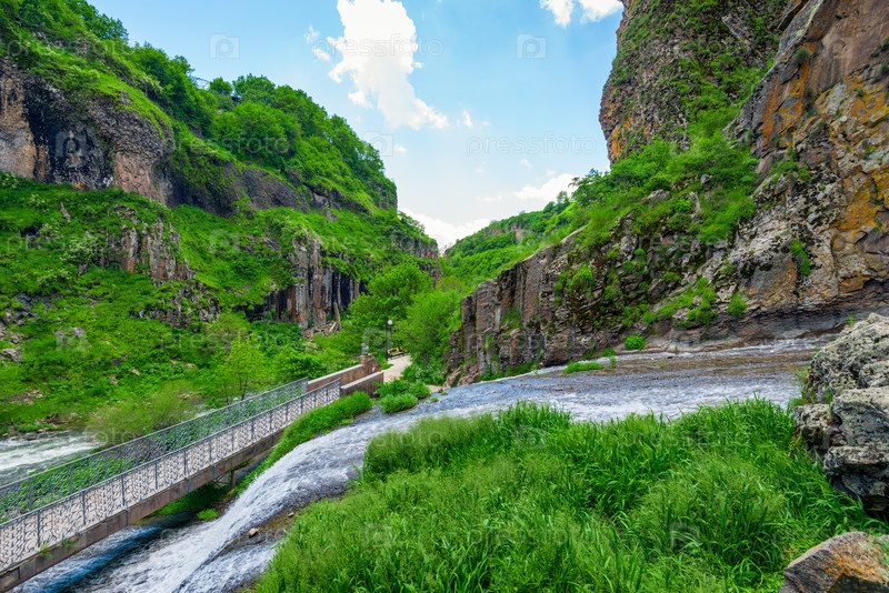 Текущий водопад волос русалки в Армении, природные достопримечательности города Джермук