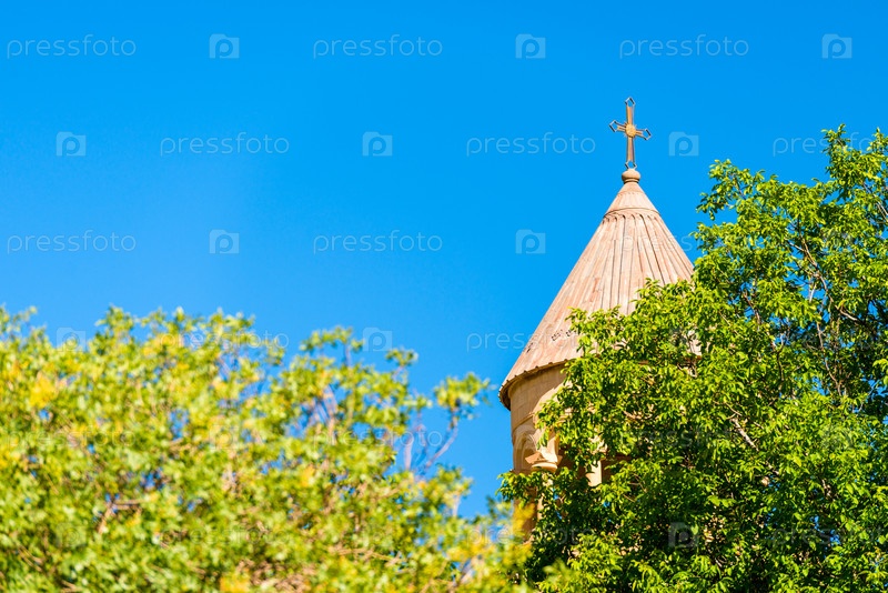 Монастырь Нораванк на скале под утренним солнцем, туристическая достопримечательность Армении