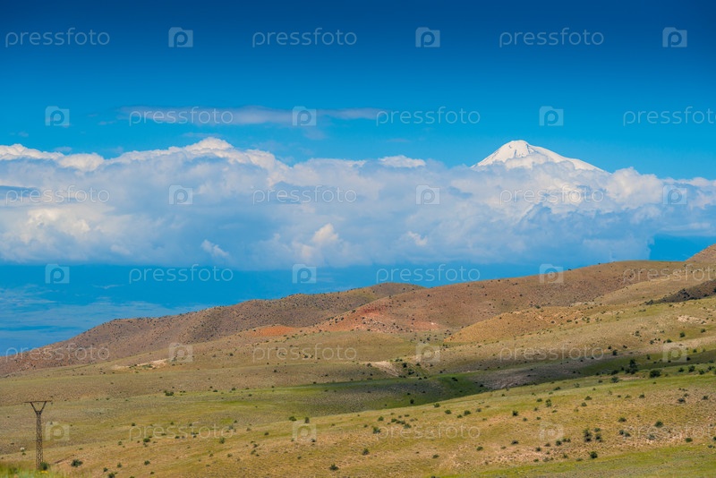 Пейзаж Армении - вид на гору Арарат и холмы
